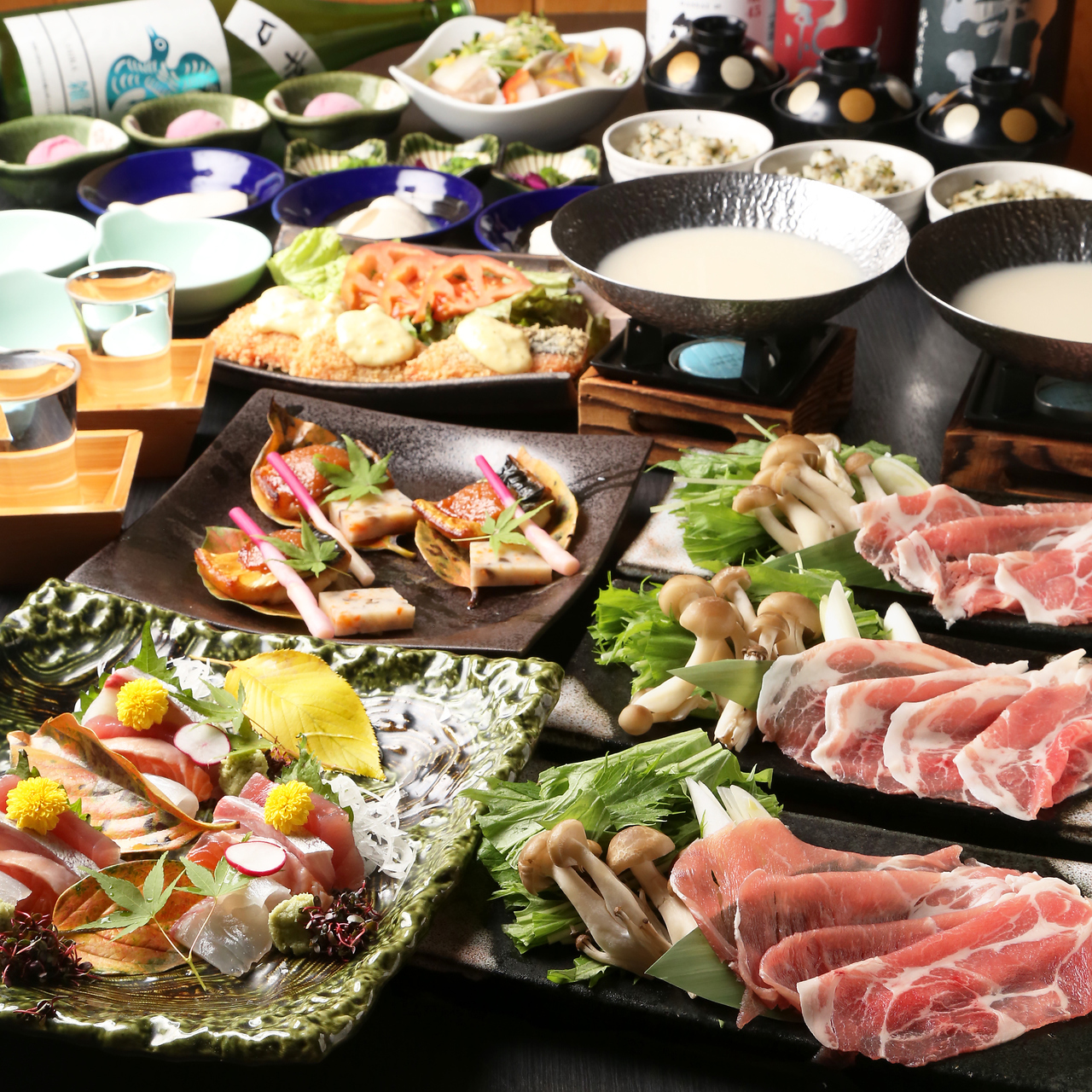【大皿盛◆宴コース】栗豚ロースの豆乳小鍋×御造り四種盛<10品>2h飲み放題6500⇒6000円