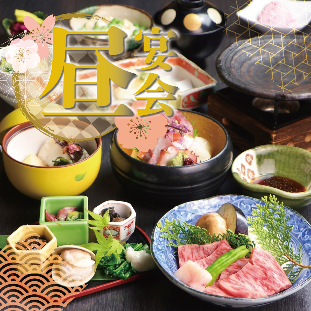 【お昼の懐石コース・2時間飲み放題付】11:30~12:30開始限定。4名以上2日前までの要予約。顔合わせやお昼宴会に!1名様分ずつのセパレート個別盛でのご提供。お昼の時間での完全予約制のコースをご用意。熊野牛や季節の食材を使用した全9品の懐石です。(L.O.30分前)※お昼は予約時のみ営業となります ※お食事のみの場合5500円でご提供致します。