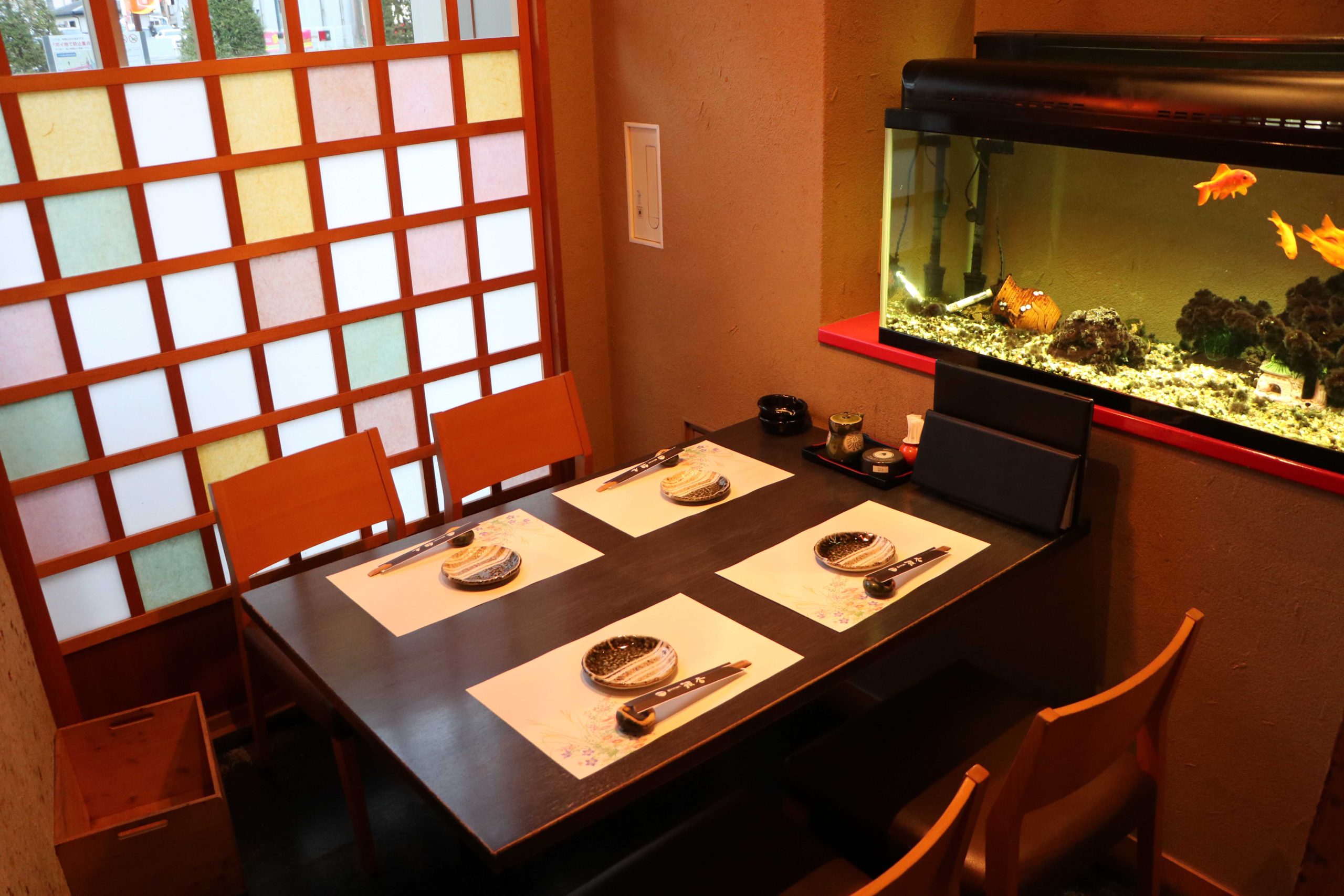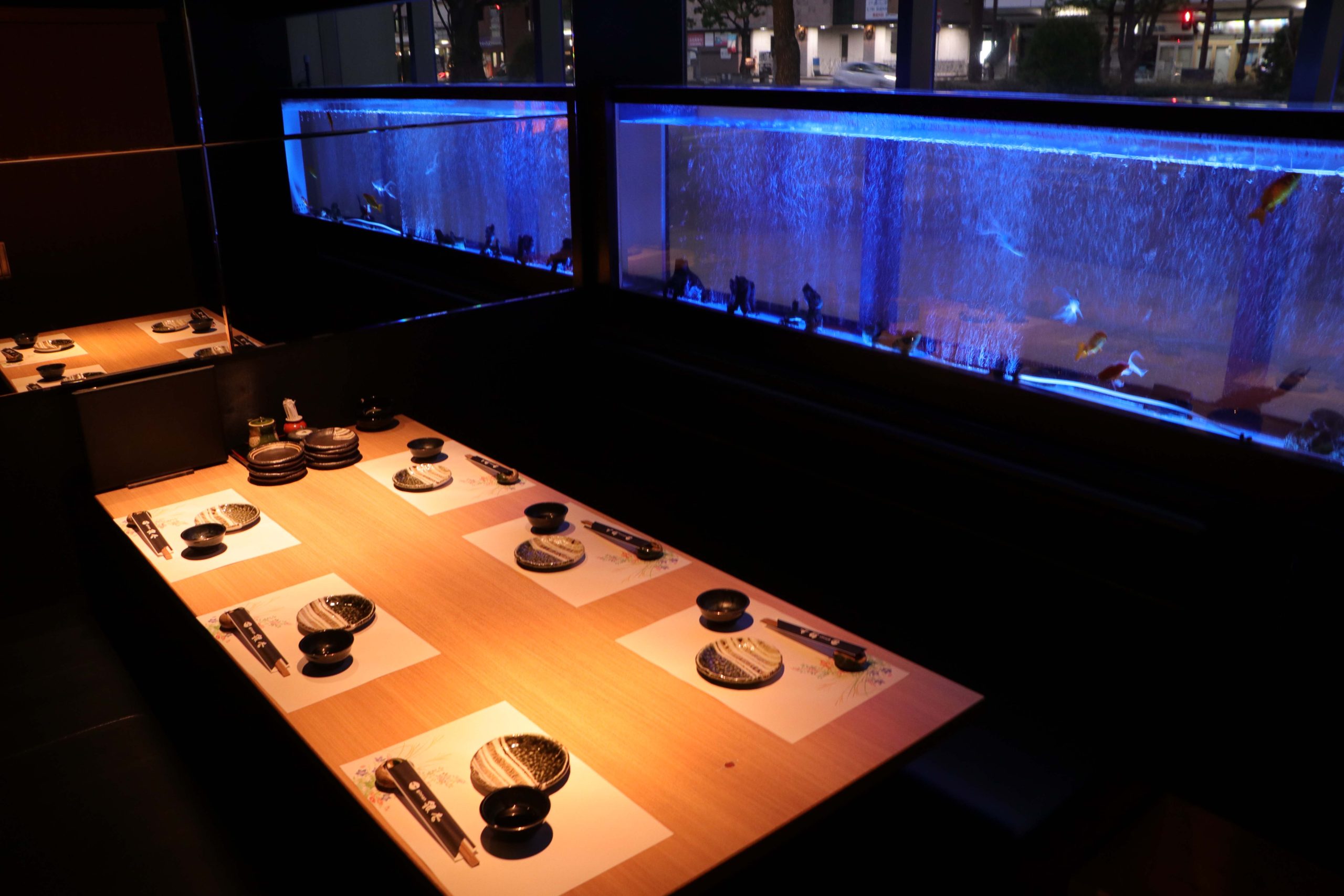 和歌山初!!リゾートダイニング部屋(壁・扉あり完全個室・6名様まで) 珍しい金魚が多数泳ぐアクアルーム!!雰囲気抜群!!眺め最高!!コンパやデートなどで良くご利用いただいております。 当店大人気の部屋です。お早めにご予約お願い申し上げます。